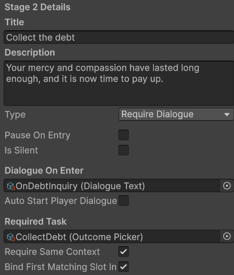 Making something modular and designer friendly was my biggest goal when designing the quest and dialogue system. I used Scriptable Objects to achieve this.
